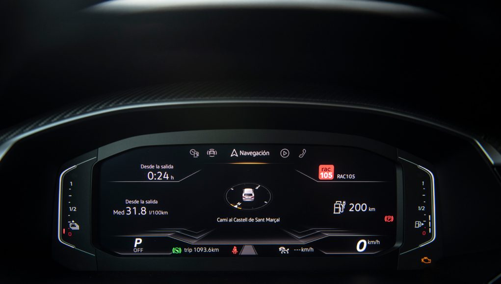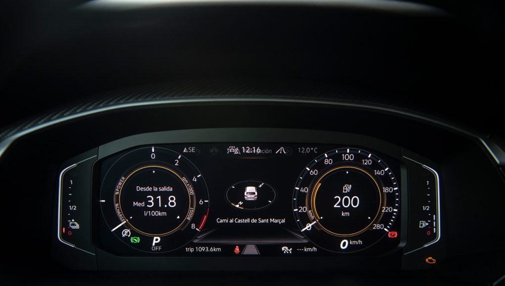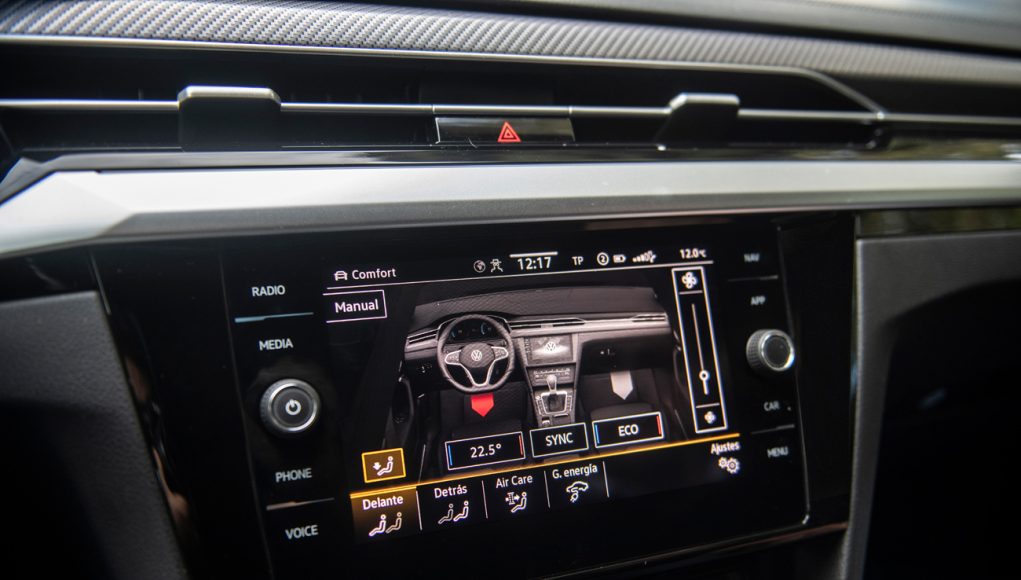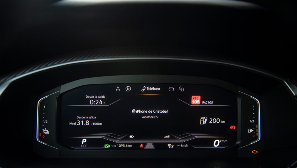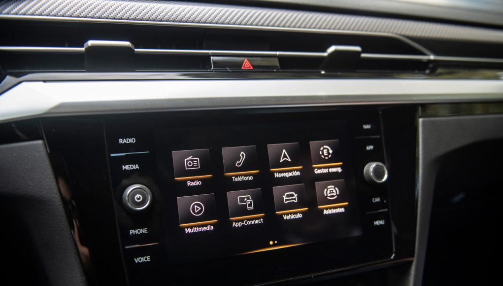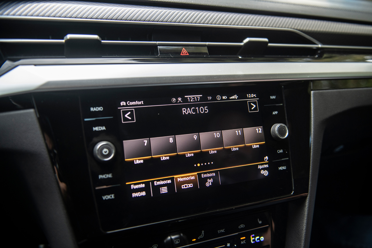 Tras el volante de tres radios multifunción que presenta la nueva generación de botones táctiles, encontramos el Virtual Cockpit de Volkswagen en una pantalla de 10,25” que permite tres configuraciones en lo que a la vista se refiere y que muestra cantidad de datos para la conducción del Arteon.