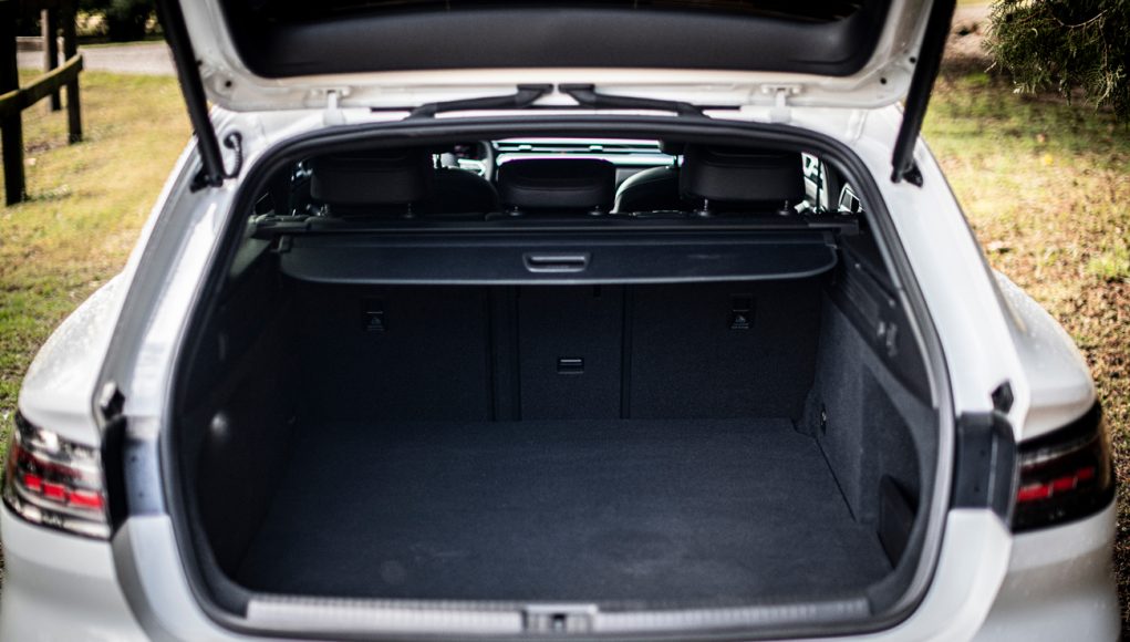 Las medidas del Arteon Shooting Brake, son las mismas que las de la berlina, con una talla de 4,8 metros, 1,8 metros de ancho y una altura que se alza en este modelo con 1,4 metros. El maletero también varía, siendo una de las grandes bazas de este coche, ofreciendo una capacidad de 455 litros en esta versión híbrida frente a los 565 litros de las versiones diésel o gasolina. Gracias a estas medidas y a una batalla de 1.46 metros encontramos en el interior espacio para 5 ocupantes que viajaran cómodamente.