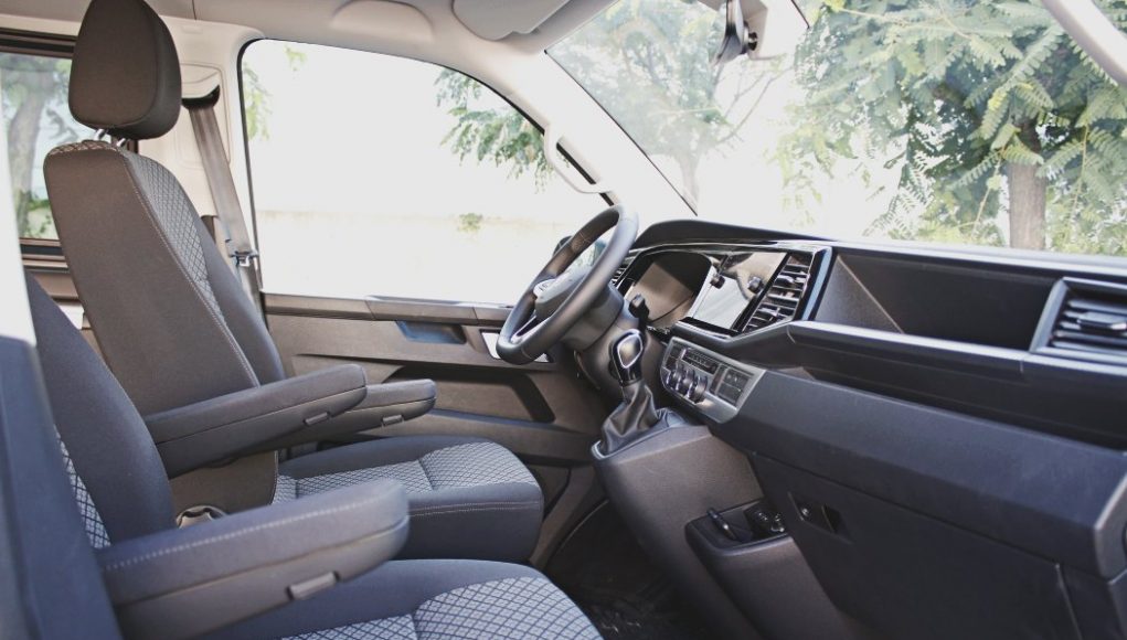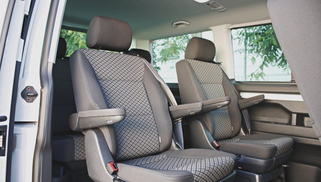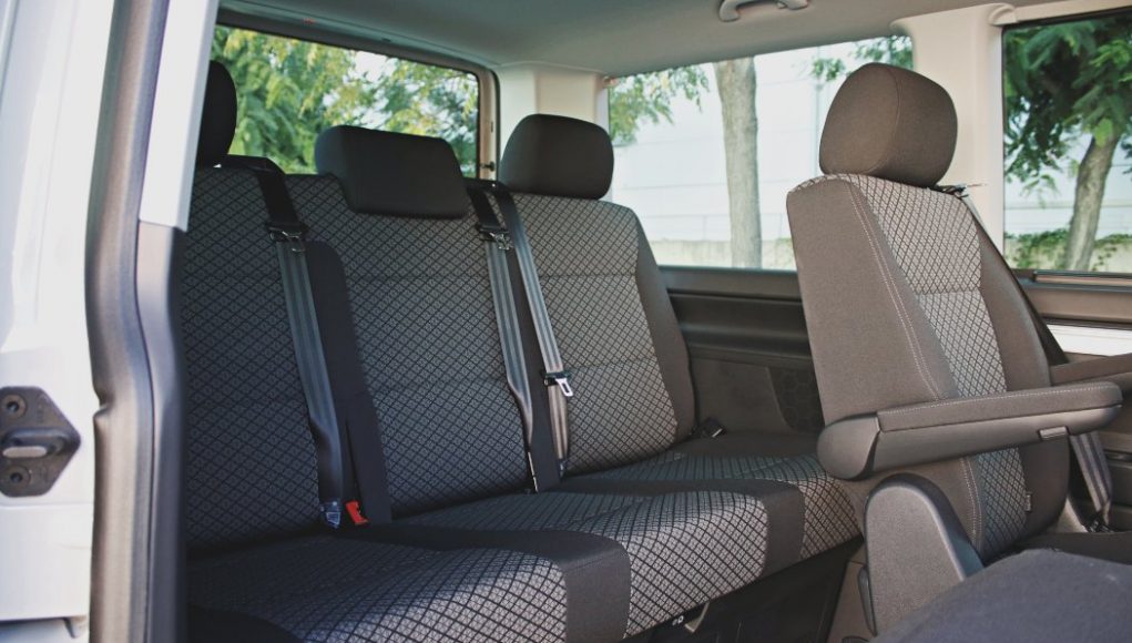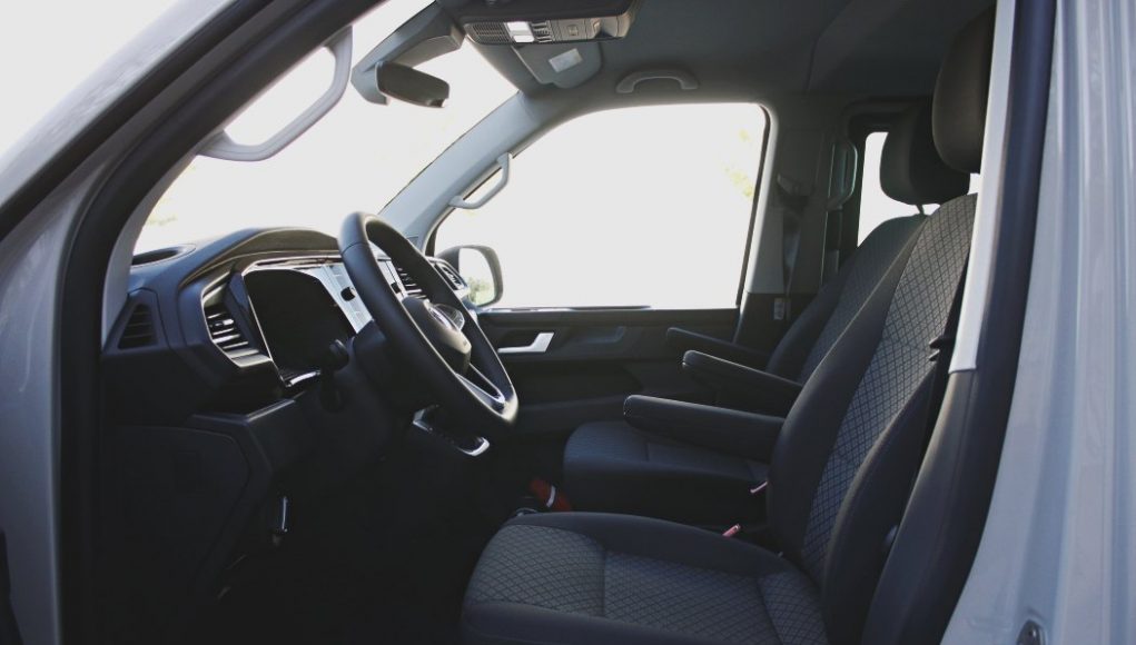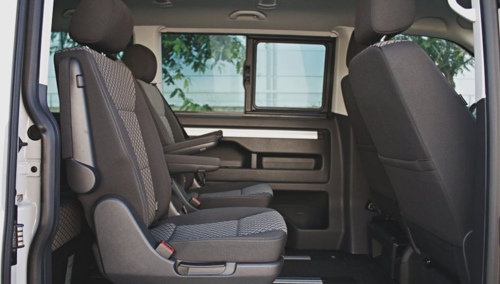 Esta variante denominada Outdoor, estaba configurada para 7 plazas, con tres filas de asientos, siendo la parte trasera la que ofrece varias alternativas, de configuración. Por un lado, porque la tercera fila de asientos se desplaza longitudinalmente para ofrecer más capacidad en el maletero, por otra, porque la segunda fila de asientos configurada como dos individuales, permite que estos se giren a contra marcha, lo que permite también colocar una mesa entre ambas filas, convirtiendo la parte trasera del Multivan en una oficina.