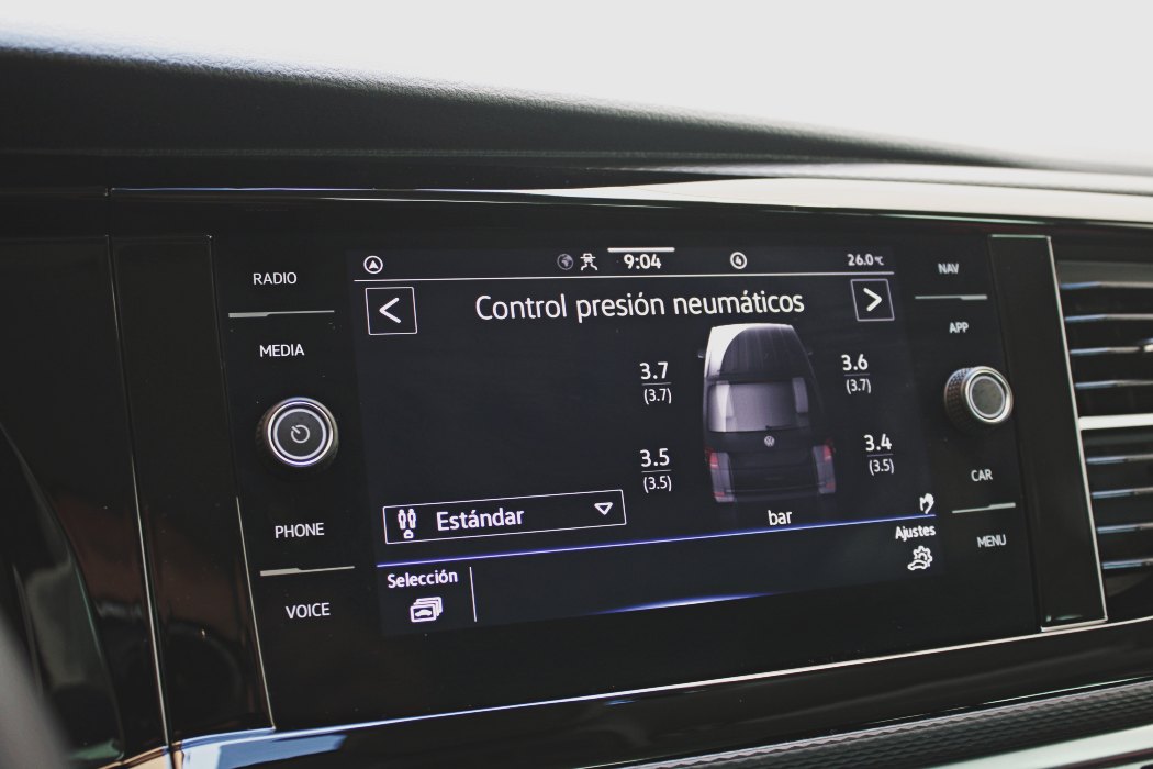 Quizás el habitáculo es donde más conservadora ha sido la marca, ya que tan solo la opción de la instrumentación Digital Cockpit es lo más novedoso, así como la pantalla táctil de 9,2”. En nuestro caso encontramos tras el volante multifunción dos esferas separadas por una pantalla TFT en color negro que hace la función de ordenador de a bordo, mientras que en la consola central encontramos el sistema de navegación “Discover Media Pro” con una pantalla táctil de 9,3” desde la que se maneja todo el sistema de infoentretenimiento que destaca por su fácil funcionamiento y sus menús intuitivos. Por debajo de esta pantalla, encontramos los controles de la climatización “Climatronic” y el selector del cambio DSG.