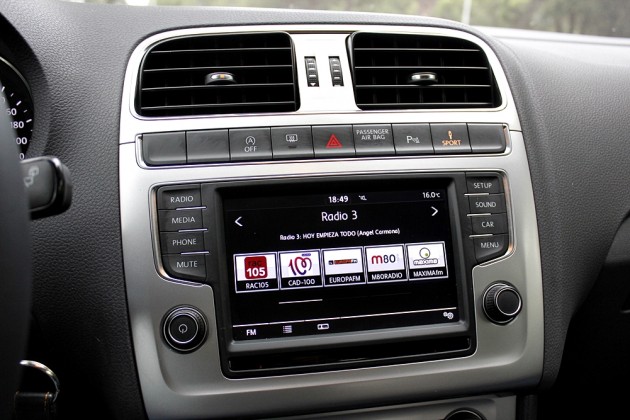 En lo que a tecnología se refiere, este Polo es el primer Volkswagen que monta la segunda generación de los sistemas de radio del Sistema de infoentretenimiento denominados MIB, ya visto en el Golf, representado en una pantalla táctil situada en el centro de la consola desde la que accede al mencionado sistema, al teléfono y al MirrorLink, que permite conexión a smartphones para poder visualizar aplicaciones a través de esta pantalla, como por ejemplo un navegador.