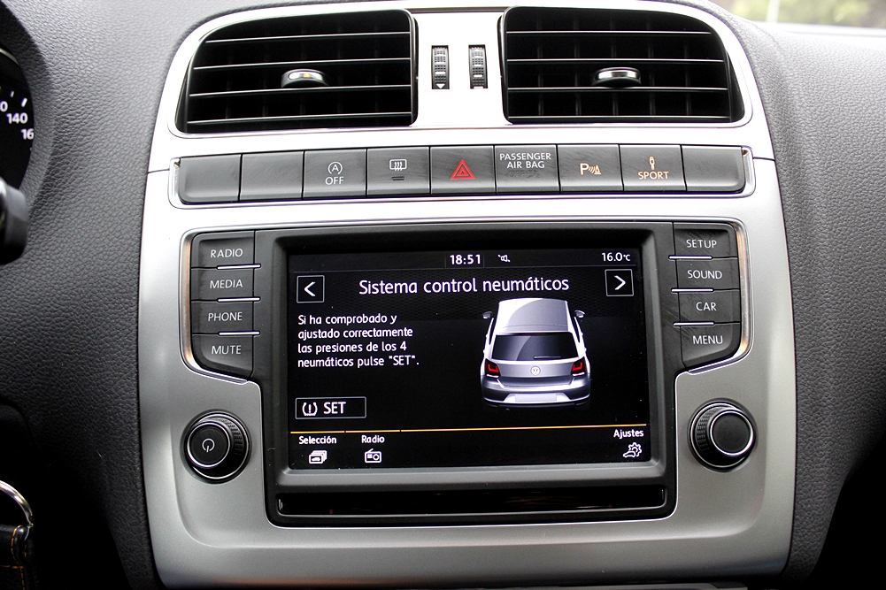 Una de las opciones que equipada nuestro Polo, es el chasis deportivo, que permite mediante un botón situado en la consola (Sport Select), modificar el tarado de las suspensión electrónicamente que ofrece dos modos de conducción, uno de ellos a modo confort, y el sport para poder sacar mayor partido a todo el conjunto, a lo que tenemos que decir que es un acierto este extra, pues la capacidad que tiene este Polo de afrontar las curvas es muy buena, ofreciendo en todo momento un agarre y una sensación de firmeza y seguridad poco común en los pequeños compactos.