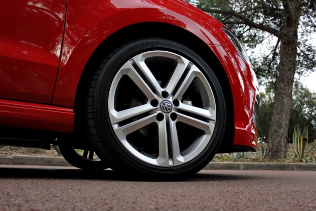Esta versión R-Line dispone de un equipamiento específico, entre el que encontramos unas llantas de 16”, aunque nuestra unidad de pruebas llevaba unas de 17” calzadas con unos neumáticos en medidas 215/40 R17 87V., spoiler específico y un parachoques delantero y trasero sobredimensionado.