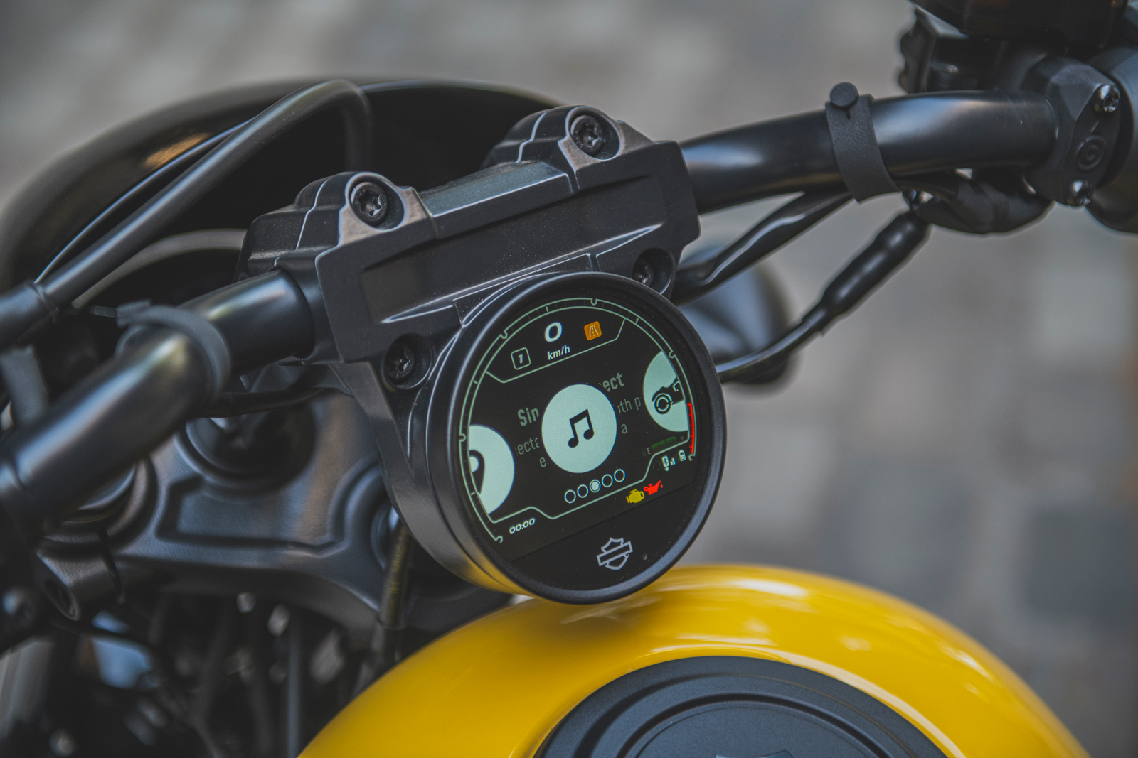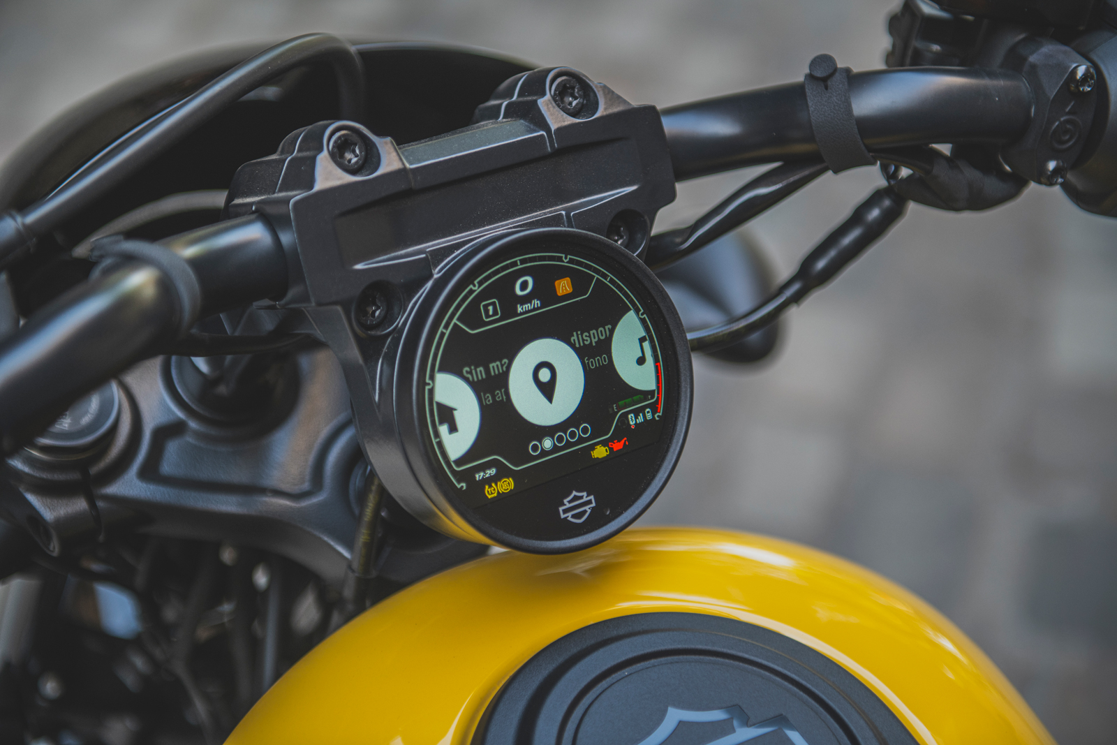 Una de las cosas que nos ha encantado, aunque somos muy de la “Old School” y de las agujas, es el nuevo cuadro de mandos que encontramos con respecto al modelo original, que en esta versión es totalmente digital, presentado en una pantalla TFT de 4” que además de ser personalizable , ofrece información como la presión de los neumáticos, autonomía, velocidad o la marcha engranada entre otros. Tiene conexión Bluetooth y ofrece un sistema de navegación que funciona en combinación con la app Harley Davidson. Se maneja con las nuevas piñas del manillar y la verdad es que su uso es bastante claro e intuitivo.